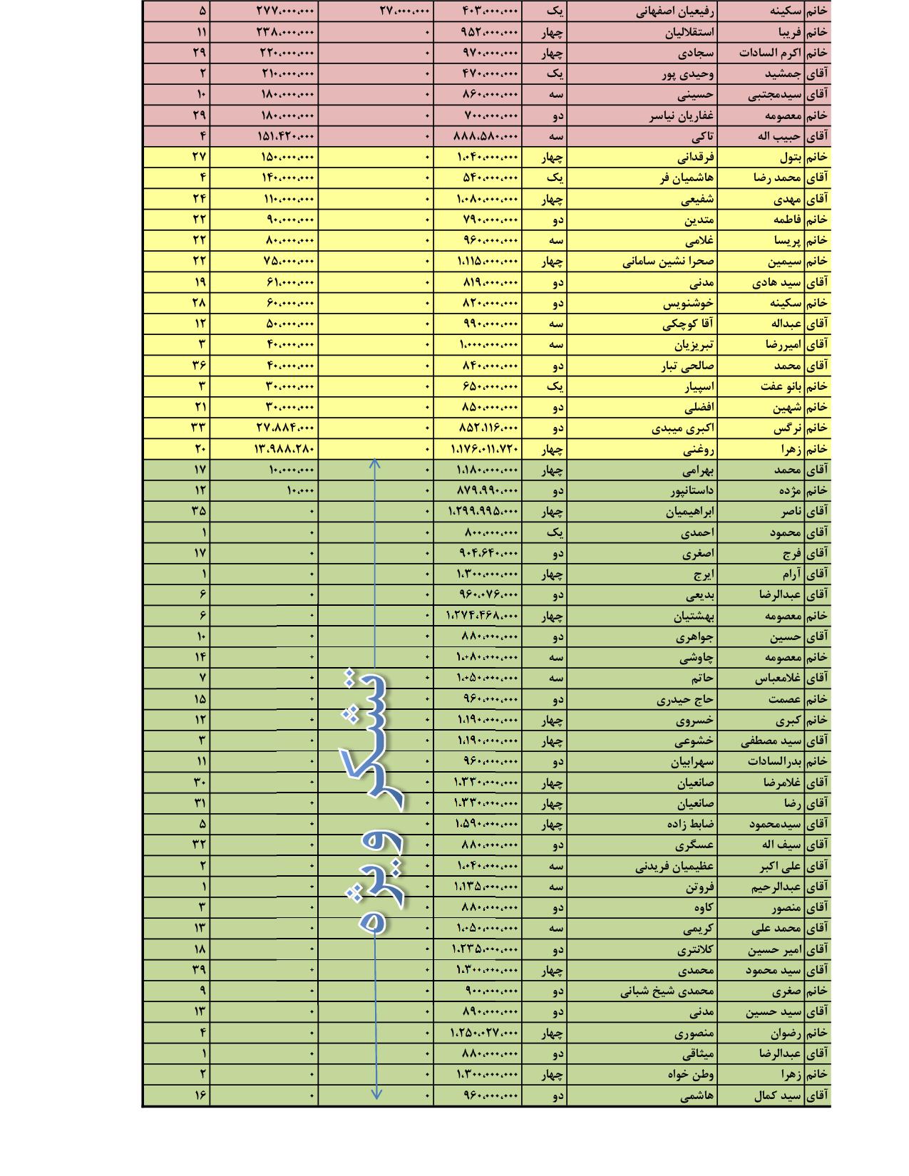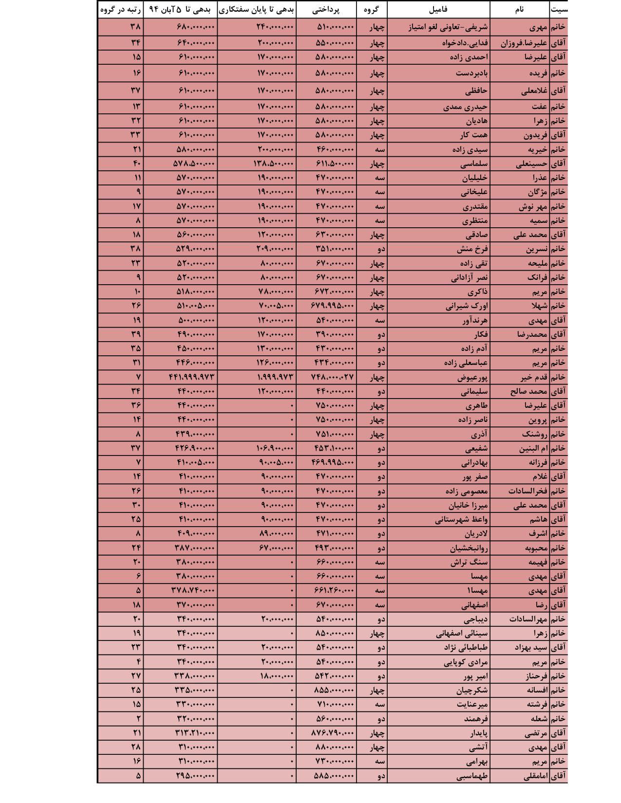 ليست اعضاء پروژه كاوه به ترتيب بيشترين بدهي تا 5 آبان ماه 94